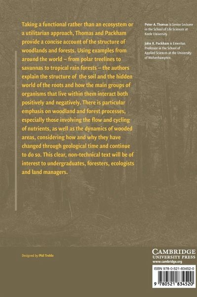 Taking a functional rather than an ecosystem or a utilitarian approach, Thomas and Packham provide a concise account of the structure of woodlands and forests. Using examples from around the world - from polar treelines to savannahs to tropical rain forests - the authors explain the structure of the soil and the hidden world of the roots; how the main groups of organisms which live within them interact both positively and negatively. There is particular emphasis on woodland and forest processes, especially those involving the flow and cycling of nutrients, as well as the dynamics of wooded areas, considering how and why they have changed through geological time and continue to do so. This clear, non-technical, text will be of interest to undergraduates, foresters, ecologists and land managers.
