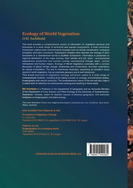 The result is a source book which is a joy to read...Buy it if you want to see the wood for the trees. - Journal of Biological Education; ...a valuable reference source. - Librarie Lavoisier; The text is extensively illustrated, presenting an excellent visual record of world vegetation, has an extensive glossary and is well referenced .. - Neu!; Archibold provided me with my most pleasurable and rewarding book reviewing experience to date ... Many thanks O.W. Archibold - if there is a better book of this ilk then I haven't encountered it. Having never travelled widely, and being unlikely to become a transcontinental field ecologist now, this book has given me a stimulating initial insight into habitats I will not otherwise encounter. - Annals of Botany; ... this is a fine work of scholarship, and any naturalist travelling abroad who is in any way interested in the habitats of the areas he is visiting should have the book available for reference - Countryside; ...a very readable book...a valuable introduction to the subject for undergraduates, teachers and lay persons. - Journal of Arid Environments; What Archibold has done is to achieve a good balance; maintaining the breadth needed for an overview of world vegetation, with sufficient depth to provide a solid introduction to the ecology of individual biomes. The result is a fine synthesis that should appeal to a broad audience. - New Zealand Journal of Botany; ...compendious and well-illustrated... - New Scientist