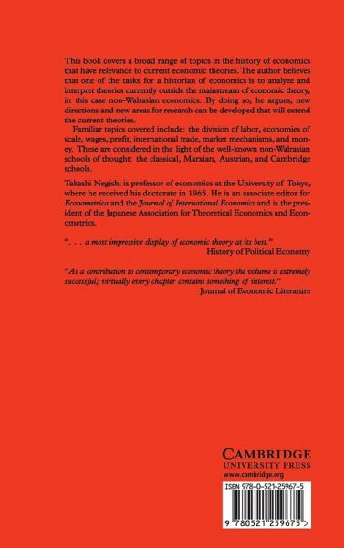 This book covers a broad range of topics in the history of economics that have relevance to economic theories. The author believes that one of the tasks for a historian of economics is to analyze and interpret theories currently outside the mainstream of economic theory, in this case non-Walrasian economics. By doing so, he argues, new directions and new areas for research can be developed that will extend the current theories. Familiar topics covered include: the division of labor, economies of scale, wages, profit, international trade, market mechanisms, and money. These are considered in the light of the well-known non-Walrasian schools of thought: the classical, Marxian, Austrian, and Cambridge schools.