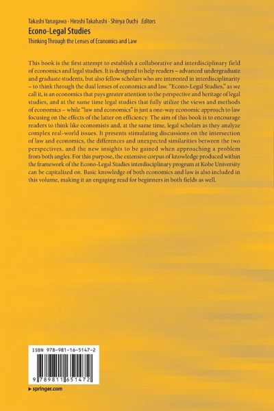 This book is the first attempt to establish a collaborative and interdisciplinary field of economics and legal studies. It is designed to help readers - advanced undergraduate and graduate students, but also fellow scholars who are interested in interdisciplinarity - to think through the dual lenses of economics and law. "Econo-Legal Studies," as we call it, is an economics that pays greater attention to the perspective and heritage of legal studies, and at the same time legal studies that fully utilize the views and methods of economics - while "law and economics" is just a one-way economic approach to law focusing on the effects of the latter on efficiency. The aim of this book is to encourage readers to think like economists and, at the same time, legal scholars as they analyze complex real-world issues. It presents stimulating discussions on the intersection of law and economics, the differences and unexpected similarities between the two perspectives, and the new insights to begained when approaching a problem from both angles. For this purpose, the extensive corpus of knowledge produced within the framework of the Econo-Legal Studies interdisciplinary program at Kobe University can be capitalized on. Basic knowledge of both economics and law is also included in this volume, making it an engaging read for beginners in both fields as well.