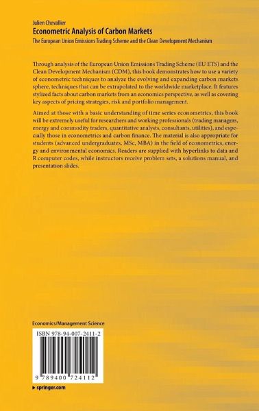 Aimed at those with a basic understanding of time series econometrics, this book will be extremely useful for researchers and working professionals (trading managers, energy and commodity traders, quantitative analysts, consultants, utilities), and especially those in econometrics and carbon finance. The material is also appropriate for students (advanced undergraduates, MSc, MBA) in the field of econometrics, energy and environmental economics. Readers are supplied with hyperlinks to data and R computer codes, while instructors receive problem sets, a solutions manual, and presentation slides.