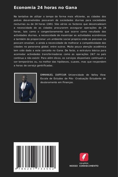 Na tentativa de utilizar o tempo de forma mais eficiente, as cidades dos países desenvolvidos passaram de sociedades diurnas para sociedades nocturnas ou de 24 horas (24h). São vários os factores que desencadeiam a necessidade de as cidades procurarem assegurar operações de 24 horas, tais como o congestionamento que ocorre como resultado das actividades diurnas, a necessidade de maximizar as actividades económicas e também de proporcionar um ambiente social propício onde as pessoas se possam envolver, e ainda a necessidade de melhorar a competitividade das cidades no panorama global, entre outros. Muito pouca atenção académica tem sido dada a este conceito no Gana. De facto, a estrutura básica para acomodar actividades transformadoras como as operações 24/7 no país continua a não existir. Para além disso, os serviços disponíveis continuam a ser temporários ou, na melhor das hipóteses, suaves, mas que respondem a horas de serviço gentrificadas.