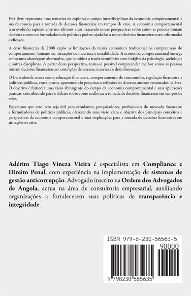 Este livro representa uma tentativa de explorar o campo interdisciplinar da economia comportamental e sua relevância para a tomada de decisões financeiras em tempos de crise. A economia comportamental tem evoluído rapidamente nos últimos anos, trazendo novas perspectivas sobre como as pessoas tomam decisões e como os formuladores de políticas podem ajudá-las a tomar decisões financeiras mais informadas e eficazes. A crise financeira de 2008 expôs as limitações da teoria económica tradicional na compreensão do comportamento humano em situações de incerteza e instabilidade. A economia comportamental emerge como uma abordagem alternativa, que combina a teoria económica com insights da psicologia, sociologia e outras disciplinas. A partir dessa perspectiva, torna-se possível compreender melhor como as pessoas tomam decisões financeiras em condições de estresse, incerteza e desinformação. O livro aborda temas como educação financeira, comportamento do consumidor, regulação financeira e políticas públicas, entre outros, apresentando pesquisas e reflexões de diversos autores renomados na área. O objetivo é fornecer uma visão abrangente do campo da economia comportamental e suas aplicações práticas, contribuindo para o debate sobre como melhorar a tomada de decisões financeiras em tempos de crise. Esperamos que este livro seja útil para estudantes, pesquisadores, profissionais do mercado financeiro e formuladores de políticas públicas, oferecendo uma visão clara e objetiva dos principais conceitos e perspectivas da economia comportamental e suas implicações para a tomada de decisões financeiras em situações de crise.