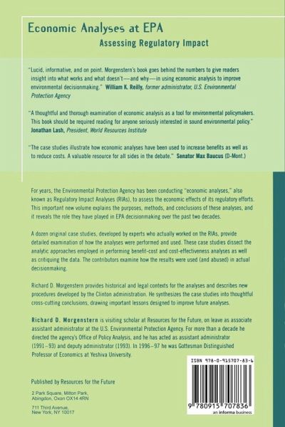 For years, the Environmental Protection Agency has been conducting programmatic 'economic analyses,' also known as Regulatory Impact Analyses (RIAs), to assess the economic effects of its regulatory efforts. This important volume explains the purpose of these analyses, along with their design, execution, conclusions, and their ultimate impact on environmental rules. Richard Morgenstern, formerly director of EPA's Office of Policy Analysis, has assembled twelve original case studies of RIAs performed over the past decade on matters such as lead in gasoline, ozone depletion, asbestos, clean drinking water, and sewage management. The contributors, most of whom actually worked on these RIAs, provide detailed examination of why and how they were performed. The case studies critique the nature, amount, and quality of data used by the EPA in their benefit-cost and cost-effectiveness analyses as well as the use (or abuse) of the results in final decisionmaking. The authors illustrate how the analyses take into account difficult issues such as discounting, risk, nonmonetized benefits and costs, and equity. Morgenstern provides the necessary historical context and the legal framework for requiring and conducting EAs. He describes new procedures outlined by the Clinton administration and synthesizes the case studies into thoughtful cross-cutting conclusions, drawing important lessons that will improve future analyses.