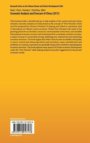 This book provides a detailed and up-to- date analysis of the current and near-future domestic economic situation in China based on the concept of "New Normal", which was first proposed by Chinese President Xi Jinping and which is commonly used in discussions on China's current economy. China's New Normal is the result of the growing pressures on domestic resources, environmental restrictions, and unstable international economic recovery and characterized by a moderate economic increase, a proper increase in commodity pricing, stabilizing new employment and optimizing economic structure. The book argues that while China focuses on stability and quality in macro-control and enhancing reform and innovation, many contradictions and problems in economic operations are gradually being solved, therefore optimizing the economic structure. The book explores many aspects of China's economic development under the "New Normal" while making analysis and policy suggestions for the present economic trends.
