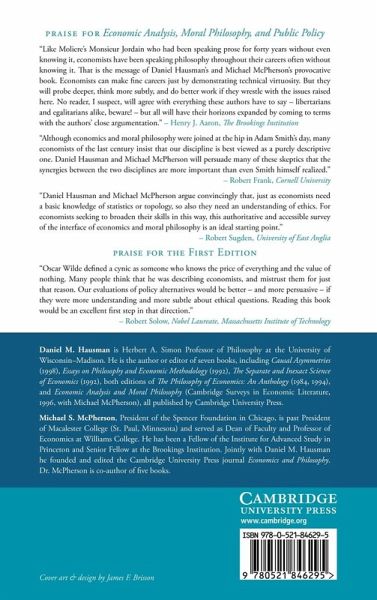 This book shows through accessible argument and numerous examples how understanding moral philosophy can improve economic analysis, how moral philosophy can benefit from economists analytical tools, and how economic analysis and moral philosophy together can inform public policy. The book lays out the standard theory of rationality and connections to welfare economics, and it clarifies important moral notions omitted in standard welfare economics, including freedom, inequality, and justice. It also introduces technical work in social choice theory and game theory that is relevant to moral theorizing.