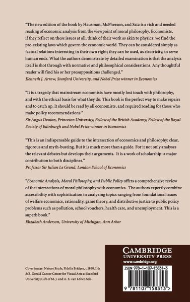 This book shows through argument and numerous policy-related examples how understanding moral philosophy can improve economic analysis, how moral philosophy can benefit from economists' analytical tools, and how economic analysis and moral philosophy together can inform public policy. Part I explores the idea of rationality and its connections to ethics, arguing that when they defend their formal model of rationality, most economists implicitly espouse contestable moral principles. Part II addresses the nature and measurement of welfare, utilitarianism and cost-benefit analysis. Part III discusses freedom, rights, equality, and justice - moral notions that are relevant to evaluating policies, but which have played little if any role in conventional welfare economics. Finally, Part IV explores work in social choice theory and game theory that is relevant to moral decision making. Each chapter includes recommended reading and discussion questions.
