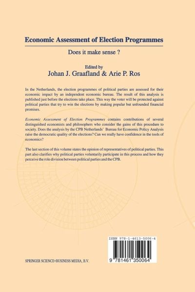 Economic Assessment of Election Programmes contains contributions of several distinguished economists and philosophers who consider the gains of this procedure to society. Does the analysis by the Netherlands' Bureau for Economic Policy Analysis (CPB) raise the democratic quality of the elections? Can we really be confident in the tools of economics? The last section of this volume states the opinion of representatives of the political parties. This part also clarifies why political parties voluntarily participate in this process and how they perceive the role division between the political party and CPB.