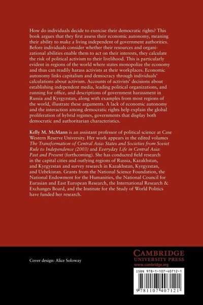 How do individuals decide to exercise their democratic rights? This book argues that they first assess their economic autonomy, meaning their ability to make a living independent of government authorities. Before individuals consider whether their resources and organizational abilities are adequate to act on their interests, they calculate the risk of political activism to their livelihood. This is particularly evident in regions of the world where states monopolize the economy and thus can readily harass activists at their workplaces. Economic autonomy links capitalism and democracy through individuals' calculations about activism. Accounts of activists' decisions about establishing independent media, leading political organizations, and running for office and descriptions of government harassment in Russia and Kyrgyzstan, along with examples from most regions of the world, illustrate these arguments. Economic autonomy and the interaction among democratic rights help explain the global proliferation of hybrid regimes, governments that display both democratic and authoritarian characteristics.