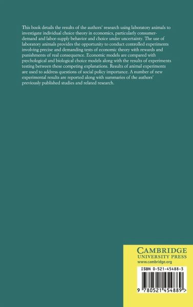 This book details the results of the authors' research using laboratory animals to investigate individual choice theory in economics, particularly consumer-demand and labor-supply behavior and choice under uncertainty. The use of laboratory animals provides the opportunity to conduct controlled experiments involving precise and demanding tests of economic theory with rewards and punishments of real consequence. Economic models are compared with psychological and biological choice models along with the results of experiments testing between these competing explanations. Results of animal experiments are used to address questions of importance related to social policy. A number of new experimental results are reported along with summaries of the authors' previously published studies and related research.