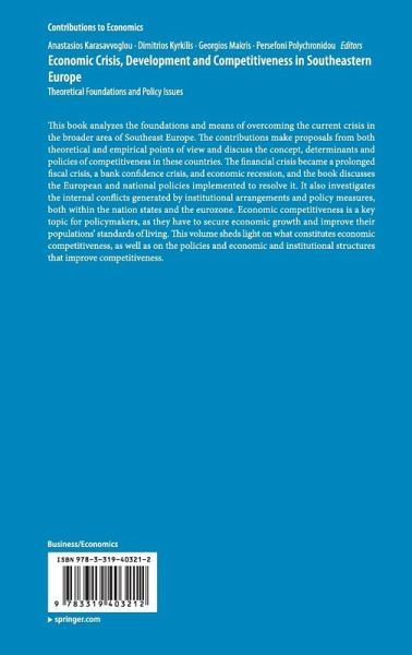 This book analyzes the foundations and means of overcoming the current crisis in the broader area of Southeast Europe. The contributions make proposals from both theoretical and empirical points of view and discuss the concept, determinants and policies of competitiveness in these countries. The financial crisis became a prolonged fiscal crisis, a bank confidence crisis, and economic recession, and the book discusses the European and national policies implemented to resolve it. It also investigates the internal conflicts generated by institutional arrangements and policy measures, both within the nation states and the eurozone. Economic competitiveness is a key topic for policymakers, as they have to secure economic growth and improve their populations' standards of living. This volume sheds light on what constitutes economic competitiveness, as well as on the policies and economic and institutional structures that improve competitiveness.