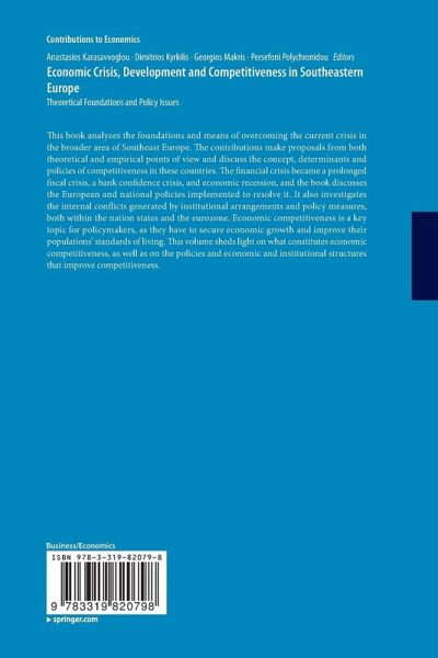 This book analyzes the foundations and means of overcoming the current crisis in the broader area of Southeast Europe. The contributions make proposals from both theoretical and empirical points of view and discuss the concept, determinants and policies of competitiveness in these countries. The financial crisis became a prolonged fiscal crisis, a bank confidence crisis, and economic recession, and the book discusses the European and national policies implemented to resolve it. It also investigates the internal conflicts generated by institutional arrangements and policy measures, both within the nation states and the eurozone. Economic competitiveness is a key topic for policymakers, as they have to secure economic growth and improve their populations' standards of living. This volume sheds light on what constitutes economic competitiveness, as well as on the policies and economic and institutional structures that improve competitiveness.