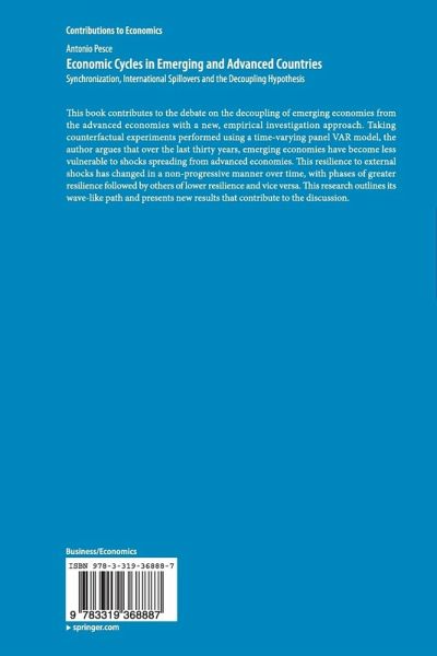 This book contributes to the debate on the decoupling of emerging economies from the advanced economies with a new, empirical investigation approach. Taking counterfactual experiments performed using a time-varying panel VAR model, the author argues that over the last thirty years, emerging economies have become less vulnerable to shocks spreading from advanced economies. This resilience to external shocks has changed in a non-progressive manner over time, with phases of greater resilience followed by others of lower resilience and vice versa. This research outlines its wave-like path and presents new results that contribute to the discussion.