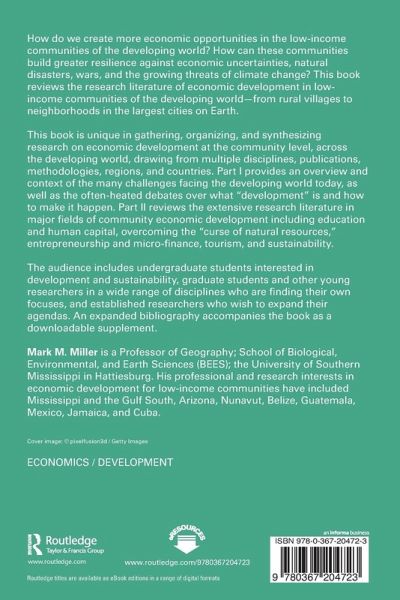 Part I: The challenges of creating wealth and resilience for communities in developing countries; 1. What stands in the way of developing countries and communities becoming developed?; 2. What are developing countries, and what does development mean for the low-income communities of those countries?; 3. How does development happen, and is it possible for communities to control their own development destiny?; Part II: The opportunities for creating wealth and resilience for low-income communities in developing countries; 4. Can low-income communities in developing countries realize their human capital potential?; 5. Can low-income communities of developing countries overcome the curse of natural resources?; 6. Can entrepreneurs solve all the problems of economic development for low-income communities in developing countries?; 7. Can tourism create economic development for low-income communities in developing countries?; 8. Can low-income communities in developing countries maintain resilience and sustainability in their economic development?