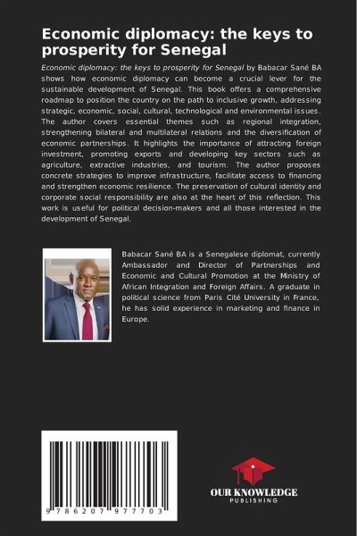 Economic diplomacy: the keys to prosperity for Senegal by Babacar Sané BA shows how economic diplomacy can become a crucial lever for the sustainable development of Senegal. This book offers a comprehensive roadmap to position the country on the path to inclusive growth, addressing strategic, economic, social, cultural, technological and environmental issues. The author covers essential themes such as regional integration, strengthening bilateral and multilateral relations and the diversification of economic partnerships. It highlights the importance of attracting foreign investment, promoting exports and developing key sectors such as agriculture, extractive industries, and tourism. The author proposes concrete strategies to improve infrastructure, facilitate access to financing and strengthen economic resilience. The preservation of cultural identity and corporate social responsibility are also at the heart of this reflection. This work is useful for political decision-makers and all those interested in the development of Senegal.