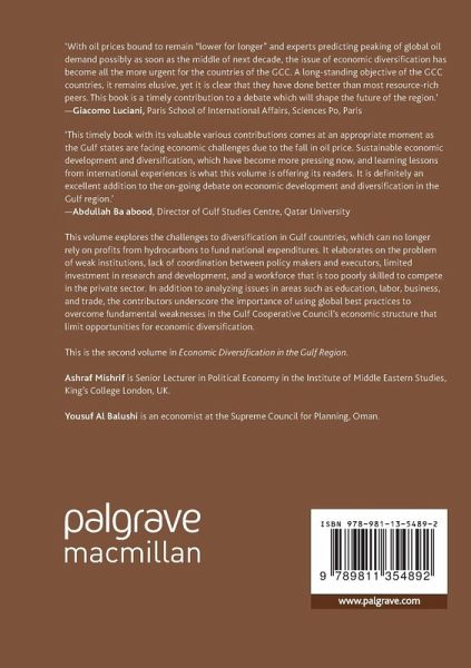 This volume explores the challenges to diversification in Gulf countries, which can no longer rely on profits from hydrocarbons to fund national expenditures. It elaborates on the problem of weak institutions, lack of coordination between policy makers and executors, limited investment in research and development, and a workforce that is too poorly skilled to compete in the private sector. In addition to analyzing issues in areas such as education, labor, business, and trade, the contributors underscore the importance of using global best practices to overcome fundamental weaknesses in the Gulf Cooperative Council's economic structure that limit opportunities for economic diversification. This is the second volume in Economic Diversification in the Gulf Region.