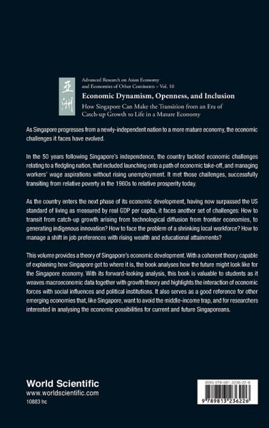 As Singapore progresses from a newly-independent nation to a more mature economy, the economic challenges it faces have evolved. In the 50 years following Singapore's independence, the country tackled economic challenges relating to a fledgling nation, that included launching onto a path of economic take-off, and managing workers' wage aspirations without rising unemployment. It met those challenges, successfully transiting from relative poverty in the 1960s to relative prosperity today. As the country enters the next phase of its economic development, having now surpassed the US standard of living as measured by real GDP per capita, it faces another set of challenges: How to transit from catch-up growth arising from technological diffusion from frontier economies, to generating indigenous innovation? How to face the problem of a shrinking local workforce? How to manage a shift in job preferences with rising wealth and educational attainments? This volume provides a theory of Singapore's economic development. With a coherent theory capable of explaining how Singapore got to where it is, the book analyses how the future might look like for the Singapore economy. With its forward-looking analysis, this book is valuable to students as it weaves macroeconomic data together with growth theory and highlights the interaction of economic forces with social influences and political institutions. It also serves as a good reference for other emerging economies that, like Singapore, want to avoid the middle-income trap, and for researchers interested in analysing the economic possibilities for current and future Singaporeans.