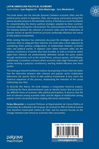 This book delves into the intricate dynamics between economic elites and the political party system in Argentina, Chile, and Uruguay, particularly during their democratization phases in the twentieth century. It introduces a novel framework for comprehending the diverse political strategies adopted by these countries' economic elites during this critical period. The central premise of this book is that the interplay between the cohesion of economic elites and the mobilization of popular sectors at specific historical junctures profoundly influences the nature of elite political involvement.