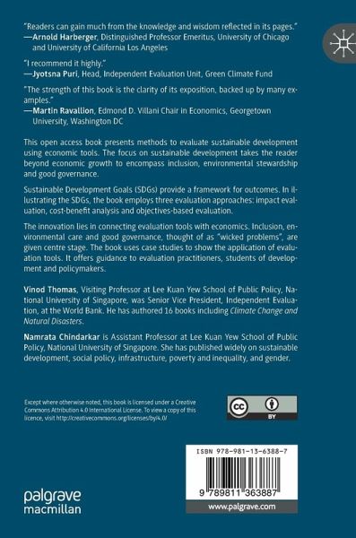 This book presents methods to evaluate sustainable development using economic tools. The focus on sustainable development takes the reader beyond economic growth to encompass inclusion, environmental stewardship and good governance. Sustainable Development Goals (SDGs) provide a framework for outcomes. In illustrating the SDGs, the book employs three evaluation approaches: impact evaluation, cost-benefit analysis and objectives-based evaluation. The innovation lies in connecting evaluation tools with economics. Inclusion, environmental care and good governance, thought of as "wicked problems", are given centre stage. The book uses case studies to show the application of evaluation tools. It offers guidance to evaluation practitioners, students of development and policymakers. The basic message is that evaluation comes to life when its links with socio-economic, environmental, and governance policies are capitalized on.