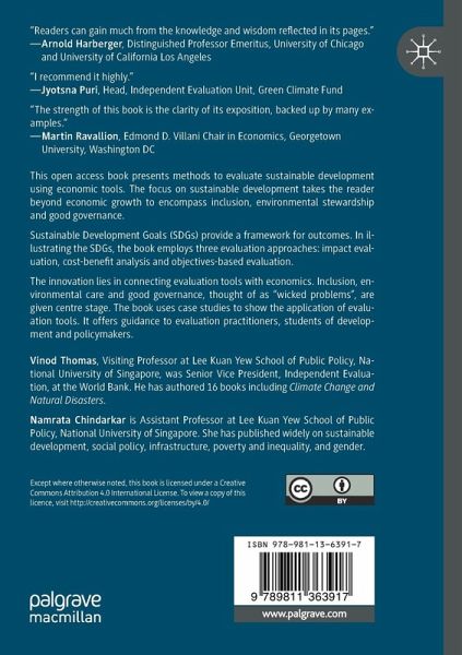 This book presents methods to evaluate sustainable development using economic tools. The focus on sustainable development takes the reader beyond economic growth to encompass inclusion, environmental stewardship and good governance. Sustainable Development Goals (SDGs) provide a framework for outcomes. In illustrating the SDGs, the book employs three evaluation approaches: impact evaluation, cost-benefit analysis and objectives-based evaluation. The innovation lies in connecting evaluation tools with economics. Inclusion, environmental care and good governance, thought of as "wicked problems", are given centre stage. The book uses case studies to show the application of evaluation tools. It offers guidance to evaluation practitioners, students of development and policymakers. The basic message is that evaluation comes to life when its links with socio-economic, environmental, and governance policies are capitalized on.