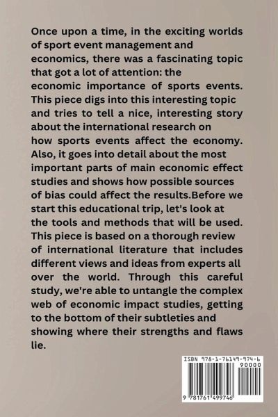 Once upon a time, in the exciting worlds of sport event management and economics, there was a fascinating topic that got a lot of attention: the economic importance of sports events. This piece digs into this interesting topic and tries to tell a nice, interesting story about the international research on how sports events affect the economy. Also, it goes into detail about the most important parts of main economic effect studies and shows how possible sources of bias could affect the results.Before we start this educational trip, let's look at the tools and methods that will be used. This piece is based on a thorough review of international literature that includes different views and ideas from experts all over the world. Through this careful study, we're able to untangle the complex web of economic impact studies, getting to the bottom of their subtleties and showing where their strengths and flaws lie.With each turn of the page, the piece gives a more detailed look at the different studies that have been done on the economic effects of sporting events. It is not only a collection of research that has already been done, but also a good resource for future research and experiments. This, in turn, makes it easier for local decision-makers and eager students who want to figure out the direct economic effects of different sports events to learn more about them. In their good work,