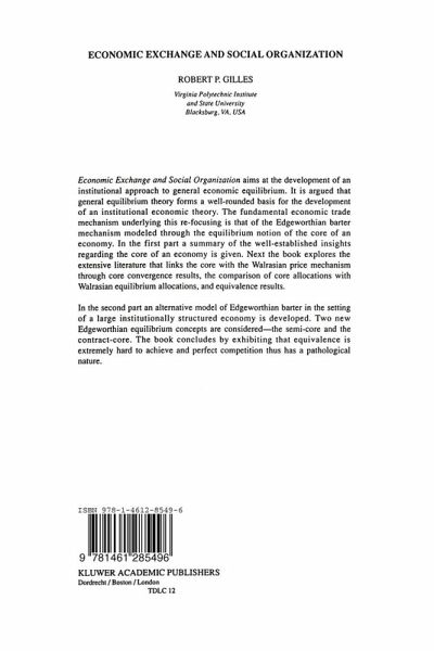 This book aims to develop an institutional approach to general economic equi librium. Thus far, institutional economics has essentially been confined to purely verbal discourse. Here I argue the case that general equilibrium theory forms a well rounded basis for the development of an institutional economic the ory. The fundamental economic trade mechanism underlying this refocusing is that of the Edgeworthian barter mechanism modelled through the equilibrium notion of the core of an economy. There is an extensive literature that links the core with the Walrasian price mechanism, which is explored in this book. Next I develop an alternative model of explicitly nonsovereign trade in the setting of an institutionally structured economy. In this book the core and several of its extensions are considered to be descriptions of the equilibrium allocations resulting from institutionalized barter processes, thereby providing a basis of an institutionally based economic theory. Traditionally finite economies have been assessed as the most natural represen tations of real life economies, in particular of market economies. Many funda mental insights have been developed. In the first half of the book I summarize the most influential and important results in the literature on finite economies regarding the relationship of the Walrasian model of a perfectly competitive market system and the Edgeworthian theory of individually based, pure barter processes. I use the axiomatic method as the main methodological framework according to which I construct my models.