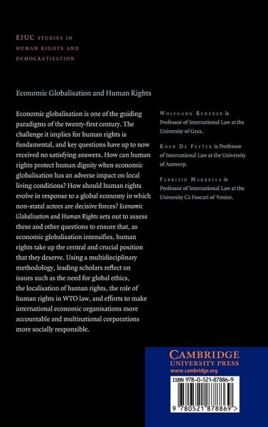 Economic globalisation is one of the guiding paradigms of the twenty-first century. The challenge it implies for human rights is fundamental, and key questions have up to now received no satisfying answers. How can human rights protect human dignity when economic globalisation has an adverse impact on local living conditions? How should human rights evolve in response to a global economy in which non-statal actors are decisive forces? Economic Globalisation and Human Rights sets out to assess these and other questions to ensure that, as economic globalization intensifies, human rights take up the central and crucial position that they deserve. Using a multidisciplinary methodology, leading scholars reflect on issues such as the need for global ethics, the localisation of human rights, the role of human rights in WTO law, and efforts to make international economic organisations more accountable and multinational corporations more socially responsible.