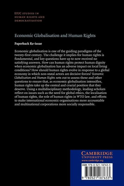 Economic globalisation is one of the guiding paradigms of the twenty-first century. The challenge it implies for human rights is fundamental, and key questions have up to now received no satisfying answers. How can human rights protect human dignity when economic globalisation has an adverse impact on local living conditions? How should human rights evolve in response to a global economy in which non-statal actors are decisive forces? Economic Globalisation and Human Rights was originally published in 2007, and sets out to assess these and other questions to ensure that, as economic globalisation intensifies, human rights take up the central and crucial position that they deserve. Using a multidisciplinary methodology, leading scholars reflect on issues such as the need for global ethics, the localisation of human rights, the role of human rights in WTO law, and efforts to make international economic organisations more accountable and multinational corporations more socially responsible.