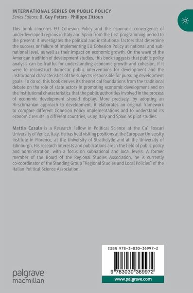 This book concerns EU Cohesion Policy and the economic convergence of underdeveloped regions in Italy and Spain from the first programming period to the present: it investigates the political and institutional factors that determine the success or failure of implementing EU Cohesion Policy at national and sub-national level, as well as their impact on economic growth. On the wave of the American tradition of development studies, this book suggests that public policy analysis can be fruitful for understanding economic growth and cohesion, if it were to reconstruct domestic public interventions for development and the institutional characteristics of the subjects responsible for pursuing development goals. To do so, this book derives its theoretical foundations from the traditional debate on the role of state actors in promoting economic development and on the institutional characteristics that the public authorities involved in the process ofeconomic development should display. More precisely, by adopting an Hirschmanian approach to development, it elaborates an original framework to compare different Cohesion Policy implementations and to understand its economic results in different countries, using Italy and Spain as pilot studies.