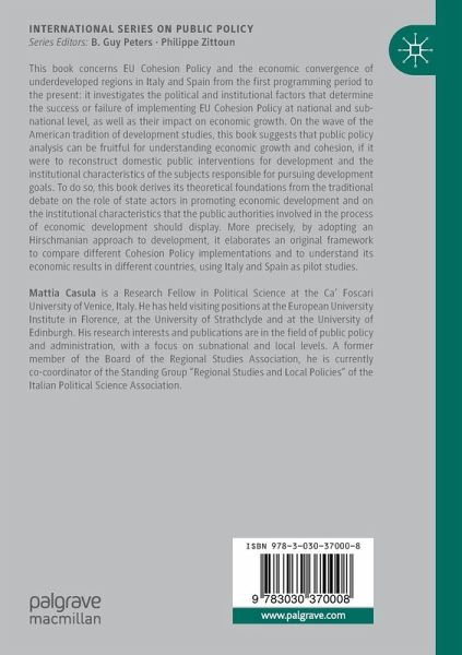 This book concerns EU Cohesion Policy and the economic convergence of underdeveloped regions in Italy and Spain from the first programming period to the present: it investigates the political and institutional factors that determine the success or failure of implementing EU Cohesion Policy at national and sub-national level, as well as their impact on economic growth. On the wave of the American tradition of development studies, this book suggests that public policy analysis can be fruitful for understanding economic growth and cohesion, if it were to reconstruct domestic public interventions for development and the institutional characteristics of the subjects responsible for pursuing development goals. To do so, this book derives its theoretical foundations from the traditional debate on the role of state actors in promoting economic development and on the institutional characteristics that the public authorities involved in the process ofeconomic development should display. More precisely, by adopting an Hirschmanian approach to development, it elaborates an original framework to compare different Cohesion Policy implementations and to understand its economic results in different countries, using Italy and Spain as pilot studies.