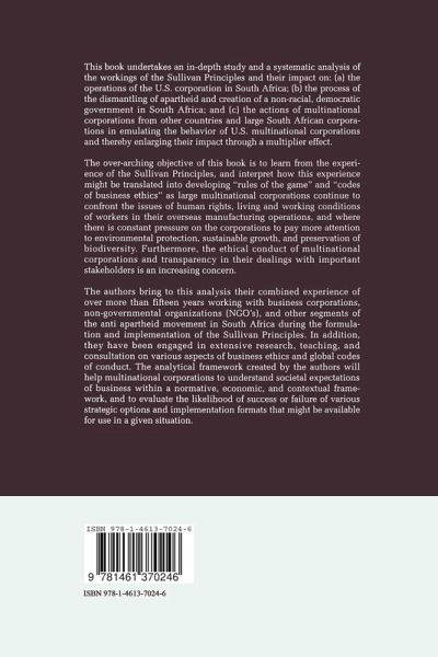 `S. Prakash Sethi and Oliver F. William's book on the antiapartheid movement and the birth and gradual modification of the Sullivan Principles is a monumental achievement. Sethi and Williams have spent more than 20 years in and out of South Africa, interacting with business leaders, union officials, lawmakers and government functionaries, researching the issues, interviewing the primary actors, consulting with ethicists, and spending endless hours with critics and apologists alike. ... Though this is an expensive book, it is a funcamental resource and belongs on the shelves of seminary and university libraries, in ecumenical, denominational and world mission offices, and in the hands of those who would be informed about one of the most important global-justice issues of the 21st century.' James Armstrong in Christian Century, Januari 17, 2001