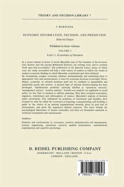 The papers of Jacob Marschak which follow in these volumes are an extraordinary combination of original and fruitful departures in economic and social thought, superb clarity of exposition, and sensitivity to the values of earlier work and even competing traditions. They make us marvel alike at their variety, their quantity, and their quality. But they do not, even so, fully reflect Marschak's contributions to the development of social science. He has had an unusual influence as one who exercises leadership. In a formal, organizational sense, this role has been manifest in his capacity as Director of the Cowles Commission for Research in Economics, then at the University of Chicago, in that organization's most productive and influential period, and later in his central role in the Western Management Science Institute, at the University of California at Los Angeles. I can speak from first-hand knowledge about the first. His special capacities are, first, the recognition of promising new concepts and of promising young scholars, and, second, getting his colleagues to join him in developing the ideas and involving them fully in the necessary tasks. There was an unusual combination of strength and humility in his methods; a display of force in pushing the work along but a willingness, almost an insistence, on treating even the most junior associate as a fully equal colleague in intellectual develop ment, whose criticism of himself was to be encouraged. His leadership has been exercised in the absence of formal positions.