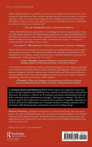 In Economic Justice and Democracy Robin Hahnel argues that progressives need to go back to the drawing board and rethink how they conceive of economic justice and economic democracy. He presents a coherent set of economic institutions and procedures that can deliver economic justice and democracy through a "participatory economy." But this is a long-run goal; he also explores how to promote the economics of equitable cooperation in the here and now by emphasizing ways to broaden the base of existing economic reform movements while deepening their commitment to more far reaching change.