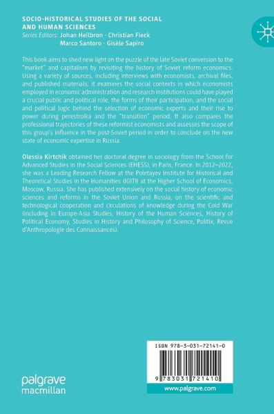 This book aims to shed new light on the puzzle of the late Soviet conversion to the "market" and capitalism by revisiting the history of Soviet reform economics. Using a variety of sources, including interviews with economists, archival files, and published materials, it examines the social contexts in which economists employed in economic administration and research institutions could have played a crucial public and political role, the forms of their participation, and the social and political logic behind the selection of economic experts and their rise to power during perestroika and the "transition" period. It also compares the professional trajectories of these reformist economists and assesses the scope of this group's influence in the post-Soviet period in order to conclude on the new state of economic expertise in Russia.