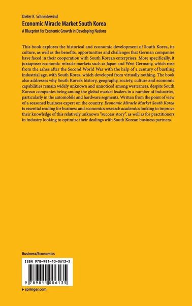 This book explores the historical and economic development of South Korea, its culture, as well as the benefits, opportunities and challenges that German companies have faced in their cooperation with South Korean enterprises. More specifically, it juxtaposes economic-miracle markets such as Japan and West Germany, which rose from the ashes after the Second World War with the help of a century of bustling industrial age, with South Korea, which developed from virtually nothing. The book also addresses why South Korea's history, geography, society, culture and economic capabilities remain widely unknown and unnoticed among westerners, despite South Korean companies being among the global market leaders in a number of industries, particularly in the automobile and hardware segments. Written from the point of view of a seasoned business expert on the country, Economic Miracle Market South Korea is essential reading for business and economics research academics looking to improve their knowledge of this relatively unknown "success story", as well as for practitioners in industry looking to optimize their dealings with South Korean business partners.
