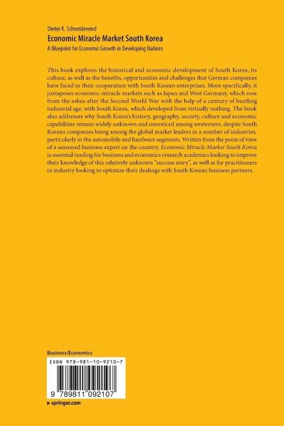 This book explores the historical and economic development of South Korea, its culture, as well as the benefits, opportunities and challenges that German companies have faced in their cooperation with South Korean enterprises. More specifically, it juxtaposes economic-miracle markets such as Japan and West Germany, which rose from the ashes after the Second World War with the help of a century of bustling industrial age, with South Korea, which developed from virtually nothing. The book also addresses why South Korea's history, geography, society, culture and economic capabilities remain widely unknown and unnoticed among westerners, despite South Korean companies being among the global market leaders in a number of industries, particularly in the automobile and hardware segments. Written from the point of view of a seasoned business expert on the country, Economic Miracle Market South Korea is essential reading for business and economics research academics looking to improve their knowledge of this relatively unknown "success story", as well as for practitioners in industry looking to optimize their dealings with South Korean business partners.