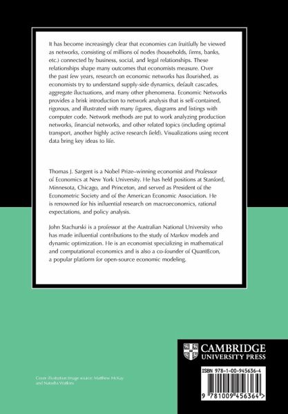 This book provides a mathematically rigorous and unified treatment of economic networks. It covers foundational theory and important applications, ranging from production networks and supply constraints to optimal transport and financial crises. The book includes open-source code for computational modeling.