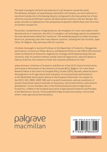 This book investigates the birth and evolution of craft breweries around the world. Microbrewery, brewpub, artisanal brewery, henceforth craft brewery, are terms referred to a new kind of production in the brewing industry contraposed to the mass production of beer, which has started and diffused in almost all industrialized countries in the last decades. This project provides an explanation of the entrepreneurial dynamics behind these new firms from an economic perspective.