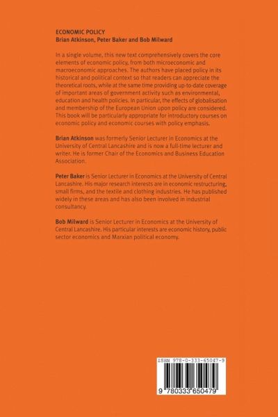 This text provides comprehensive coverage of the core elements of economic policy, from both microeconomic and macroeconomic approaches. The authors have placed policy in its historical and political context so that readers can appreciate the theoretical roots. In particular, the effects of globalisation and membership of the European Union upon policy are considered. This book will be particularly appropriate for introductory courses on economic policy and economics courses with a particular policy emphasis.