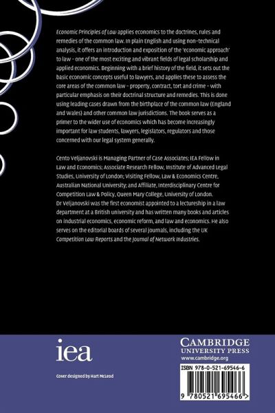 Economic Principles of Law applies economics to the doctrines, rules and remedies of the common law. In plain English and using non-technical analysis, it offers an introduction and exposition of the 'economic approach' to law - one of the most exciting and vibrant fields of legal scholarship and applied economics. Beginning with a brief history of the field, it sets out the basic economic concepts useful to lawyers, and applies these to assess the core areas of the common law - property, contract, tort and crime - with particular emphasis on their doctrinal structure and remedies. This is done using leading cases drawn from the birthplace of the common law (England & Wales) and other common law jurisdictions. The book serves as a primer to the wider use of economics which has become increasingly important for law students, lawyers, legislators, regulators and those concerned with our legal system generally.