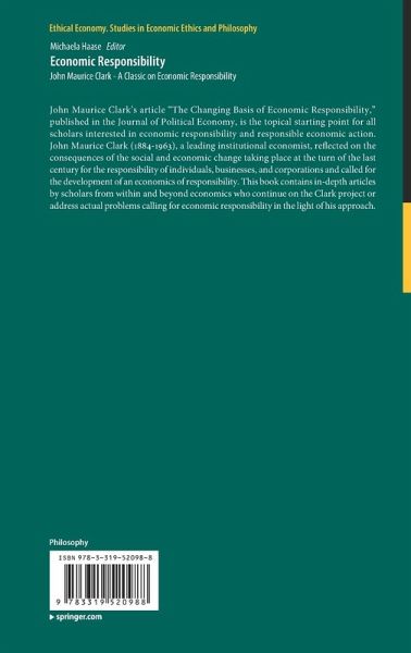 John Maurice Clark's article " The Changing Basis of Economic Responsibility ," published in the Journal of Political Economy , is the topical starting point for all scholars interested in economic responsibility and responsible economic action. John Maurice Clark (1884-1963), a leading institutional economist, reflected on the consequences of the social and economic change taking place at the turn of the last century for the responsibility of individuals, businesses, and corporations and called for the development of an economics of responsibility. This book contains in-depth articles by scholars from within and beyond economics who continue on the Clark project or address actual problems calling for economic responsibility in the light of his approach.