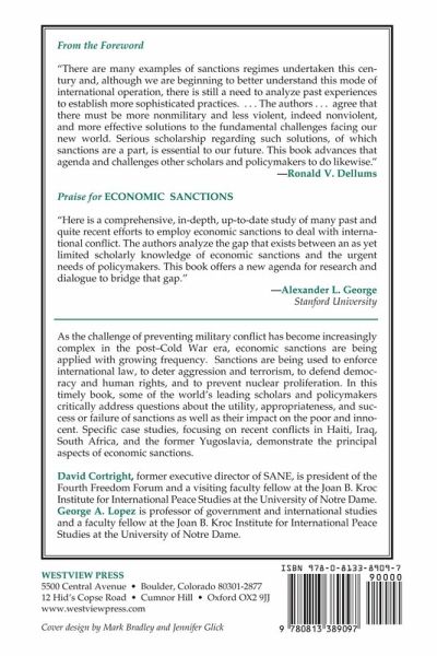 Foreword International and National Experiences with Sanctions Economic Sanctions in Contemporary Global Relations The United Nations Experience with Sanctions Economic Sanctions as Tools of Foreign Policy A Review of Economic Sanctions: A Russian Perspective Assessing Sanctions Factors Affecting the Success of Sanctions The Problems and Promise of Sanctions Sanctions and International Law The Political and Moral Appropriateness of Sanctions Economic Sanctions and the Just War Doctrine Case Studies UN Sanctions Against Iraq Economic Sanctions Against Iraq: Do They Contribute to a Just Settlement? The Use of Sanctions in Former Yugoslavia: Misunderstanding Political Realities The Use of Sanctions in Former Yugoslavia: Can They Assist in Conflict Resolution? The Use of Sanctions in Haiti: Assessing the Economic Realities Sanctions and Apartheid: The Economic Challenge to Discrimination The Future of Sanctions A Proposal for a New United Nations Council on Economic Sanctions Research Concerns and Policy Needs in an Era of Sanctions