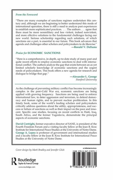Foreword -- International and National Experiences with Sanctions -- Economic Sanctions in Contemporary Global Relations -- The United Nations Experience with Sanctions -- Economic Sanctions as Tools of Foreign Policy -- A Review of Economic Sanctions: A Russian Perspective -- Assessing Sanctions -- Factors Affecting the Success of Sanctions -- The Problems and Promise of Sanctions -- Sanctions and International Law -- The Political and Moral Appropriateness of Sanctions -- Economic Sanctions and the Just-War Doctrine -- Case Studies -- UN Sanctions Against Iraq -- Economic Sanctions Against Iraq: Do They Contribute to a Just Settlement? -- The Use of Sanctions in Former Yugoslavia: Misunderstanding Political Realities -- The Use of Sanctions in Former Yugoslavia: Can They Assist in Conflict Resolution? -- The Use of Sanctions in Haiti: Assessing the Economic Realities -- Sanctions and Apartheid: The Economic Challenge to Discrimination -- The Future of Sanctions -- A Proposal for a New United Nations Council on Economic Sanctions -- Research Concerns and Policy Needs in an Era of Sanctions