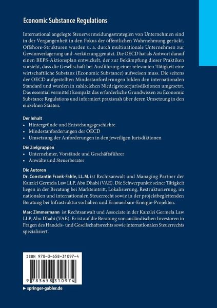 International angelegte Steuervermeidungsstrategien von Unternehmen sind in der Vergangenheit in den Fokus der öffentlichen Wahrnehmung gerückt. Offshore-Strukturen wurden u. a. durch multinationale Unternehmen zur Gewinnverlagerung und -verkürzung genutzt. Die OECD hat als Antwort darauf einen BEPS-Aktionsplan entwickelt, der zur Bekämpfung dieser Praktiken vorsieht, dass die Gesellschaft bei Ausführung einer relevanten Tätigkeit eine wirtschaftliche Substanz (Economic Substance) aufweisen muss. Die seitens der OECD aufgestellten Mindestanforderungen bilden den internationalen Standard und wurden in zahlreichen Niedrigsteuerjurisdiktionen umgesetzt. Das essential vermittelt kompakt das erforderliche Grundwissen zu Economic Substance Regulations und informiert praxisnah über deren Umsetzung in den einzelnen Staaten.