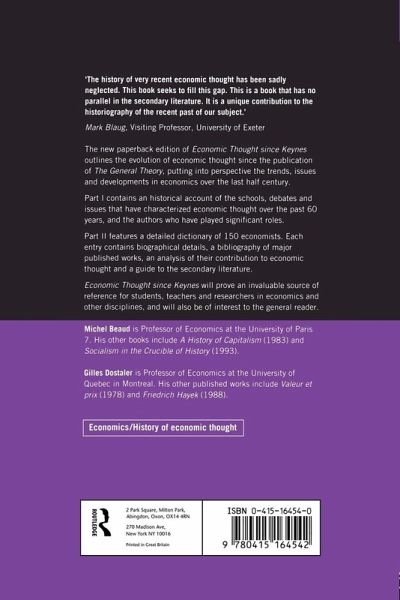 Economic Thought Since Keynes provides a concise overview of changing economic thought in the latter part of the twentieth century. Part 1 gives an analysis of topics including: * Keynes and the General Theory, * the triumph of interventionism, * the neoclassical synthesis, * the resurgence of liberalism. Part 11 gives a concise biography of the 150 most influential economists since Keynes. This invaluable book will be a useful reference tool for anyone teaching or studying economics.