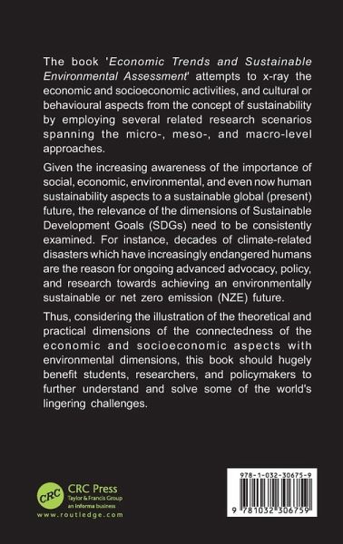 The book 'Economic Trends and Sustainable Environmental Assessment' attempts to x-ray the economic and socioeconomic activities, and cultural or behavioural aspects from the concept of sustainability by employing several related research scenarios spanning the micro-, meso-, and macro-level approaches.