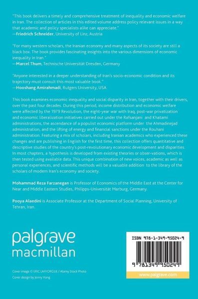 This book examines economic inequality and social disparity in Iran, together with their drivers, over the past four decades. During this period, income distribution and economic welfare were affected by the 1979 Revolution, the eight-year war with Iraq, post-war privatization and economic liberalization initiatives carried out under the Rafsanjani and Khatami administrations, the ascendance of a populist economic platform under the Ahmadinejad administration, and the lifting of energy and financial sanctions under the Rouhani administration. Featuring a mix of scholars, including Iranian academics who experienced these changes and are publishing in English for the first time, this collection offers quantitative and descriptive studies of the country's post-revolutionary economic development and disparities. In most chapters, a hypothesis is developed from existing theories or observations, which is then tested using available data. This unique combination of new voices, academicas well as personal experiences, and scientific methods will be a valuable addition to the library of the scholars of modern Iran's economy and society.