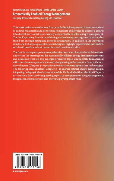 This book gathers contributions from a multidisciplinary research team comprised of control engineering and economics researchers and formed to address a central interdisciplinary social issue, namely economically enabled energy management. The book's primary focus is on achieving optimal energy management that is viable from both an engineering and economic standpoint. In addition to the theoretical results and techniques presented, several chapters highlight experimental case studies, which will benefit academic researchers and practitioners alike. The first three chapters present comprehensive overviews of respective social contexts, underscore the pressing need for economically efficient energy management systems and academic work on this emerging research topic, and identify fundamental differences between approaches in control engineering and economics. In turn, the next three chapters (Chapters 4-6) provide economics-oriented approaches to the subject. The following five chapters (Chapters 7-11) address optimal energy market design, integrating both physical and economic models. The book's last three chapters (Chapters 12-14) mainly focus on the engineering aspects of next-generation energy management, though economic factors are also shown to play important roles.