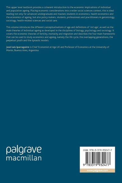 This upper level textbook provides a coherent introduction to the economic implications of individual and population ageing. Placing economic considerations into a wider social sciences context, this is ideal reading not only for advanced undergraduate and masters students in economics, health economics and the economics of ageing, but also policy makers, students, professionals and practitioners in gerontology, sociology, health-related sciences and social care.