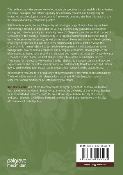 Split into three parts, the book begins by introducing a range of topics forming the basis of knowledge needed to understand the varying sustainability discourses in economics, ecology and interdisciplinary sustainability research. Chapters cover the political context of sustainability; the history of sustainability in European environmental discourses dating back to the seventeenth century; as well as various problems and forms of interdisciplinary knowledge integration and synthesis in the sustainability process. Part II reviews the core economic themes relevant to sustainable development including natural resource management, environmentaleconomics and ecological economics. Also highlighted are often neglected issues such as conflicts, disasters and interrelated crises on the way towards sustainability. The chapters in Part III discuss the future of the sustainability process. They argue for the necessity of overhauling the relationship between science and practice; explore failures and the unforeseen difficulties of sustainability transformation; and discuss how to enable a long term sustainability process that reaches into the distant future.